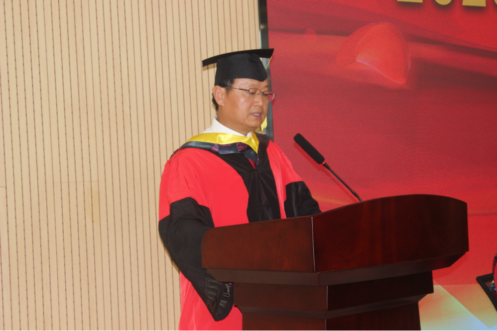 经理齐跃峰、副经理练秋生、副经理王常武、各系系主任共同为毕业生授予学位。