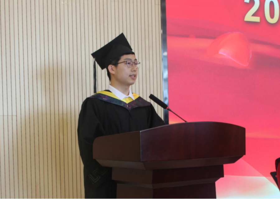 软件工程6班毕业生亓云鹏代表2023届全体本科毕业生表达了对母校的感情和感恩,他郑重承诺,一定继续秉承燕大“厚德、博学、求是”的校训,发扬“艰苦奋斗、严谨治学、求实创新”的燕大精神,用实际行动为国家和社会做出贡献,回馈母校。