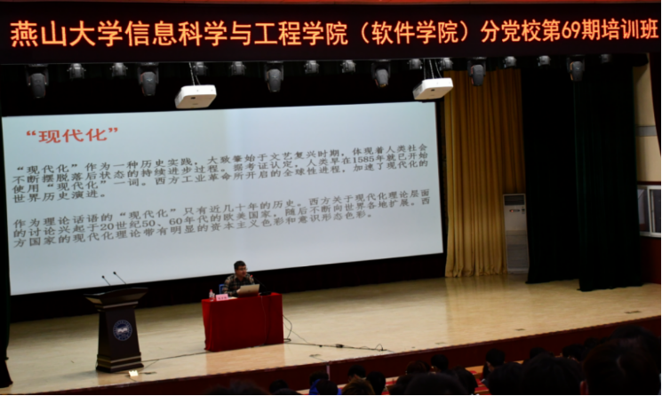 刘永志老师以《新时代新征程中国共产党的使命任务》为题,为学员们带来首场专题辅导报告。报告围绕“中国式现代化”主题,从“为什么”、“是什么”两个方面展开,详细论述了中国式现代化的提出背景,指出“中国式现代化”是党的二十大的一个重大理论创新,是科学社会主义的最新重大成果;从马克思主义经典作家对落后国家实现现代化的思考、中国共产党人对中国式现代化的理论探索、深植根于中华优秀传统文化、借鉴吸收一切人类优秀文明成果四个方面对中国式现代化进行思想溯源;党课中,深刻阐明了中国式现代化的科学内涵包括人口规模巨大、全体人民共同富裕、两个文明相协调、人与自然和谐共生、走和平发展道路五大特色。学员们纷纷表示收获良多,对中国式现代化生成的历史逻辑、深刻内涵有了更深入地理解。