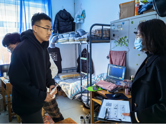 全体辅导员在走访的同时还开展了全面安全隐患排查工作。大部分寝室卫生和安全状况良好,公共区域整洁畅通,但个别宿舍也存在宿舍卫生不理想、门口仍然堆放鞋架等现象,针对这一问题,辅导员老师现场进行思想教育,并督促整改。