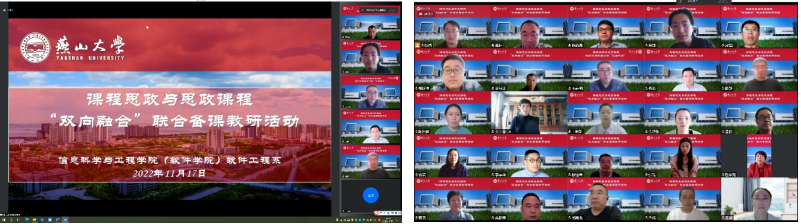 11月17日下午,永利集团304am登录软件工程系与马克思主义公司联合开展课程思政与思政课程“双向融合”联合备课教研活动,软件工程系全体教师和马克思主义公司7位教师、教务处相关老师参与教研活动。本次活动由软件工程系主任王林主持。
