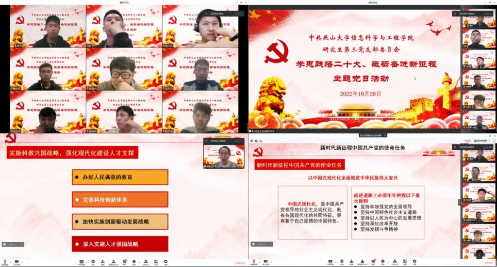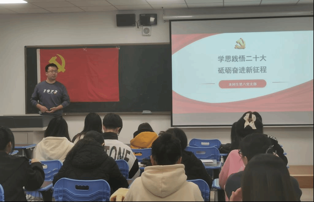 本科生第八党支部召开“学思践悟二十大、砥砺奋进新征程”主题党日活动,支部党员就“二十大报告中的新观点、新论断、新思想”及党史开展了知识测验。
