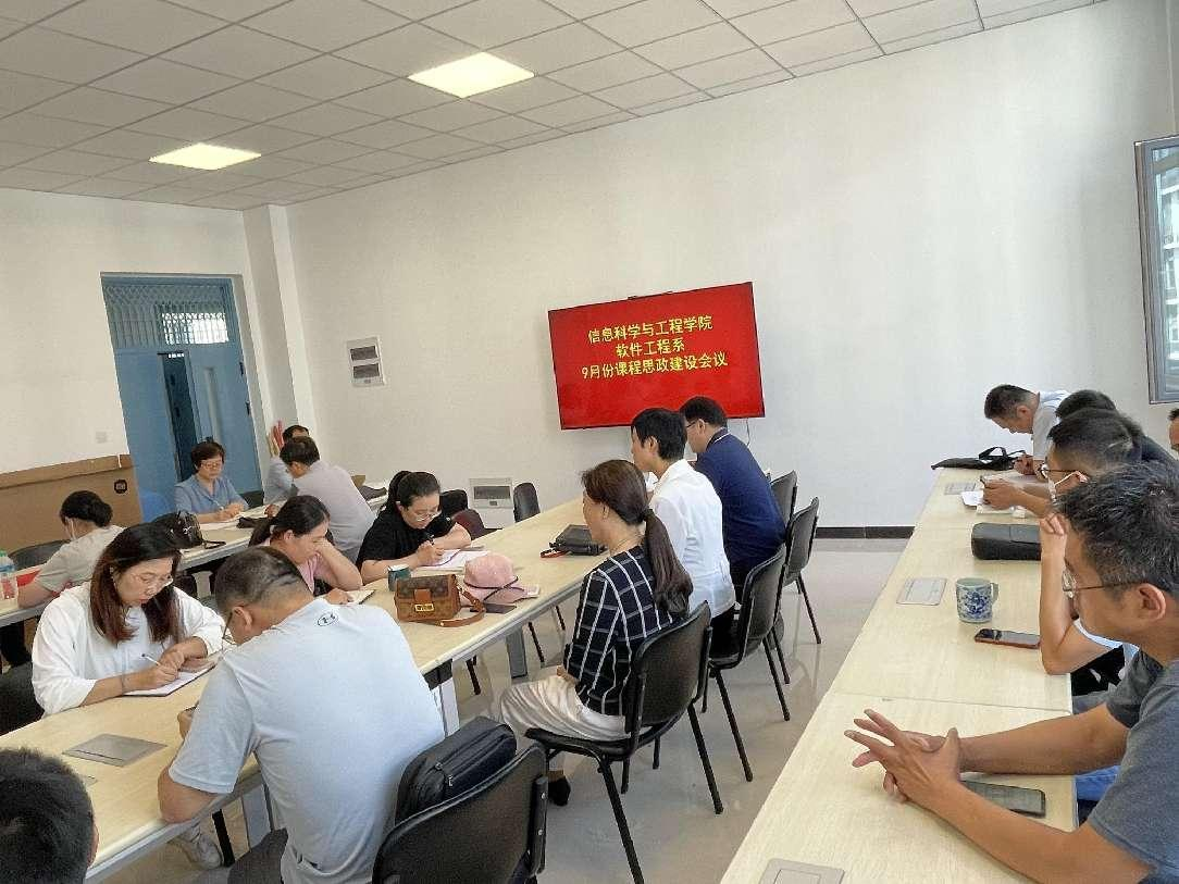 9月8日下午,软件工程系在信息馆2号楼302室召开2022年秋季学期全体教师会议暨课程思政建设会议,会议由系主任王林主持,全系教师参会。