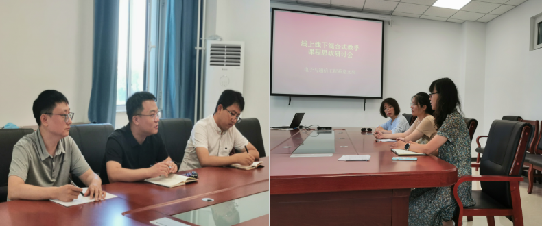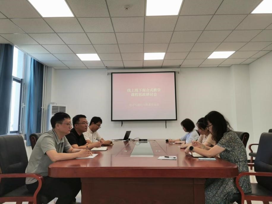 为更好地在线上线下混合式教学新模式下开展课程思政建设工作,在信息科学与工程公司党委的领导下,电子与通信工程系党支部于8月17日组织召开线上线下混合式教学课程思政研讨会。会议由党支部书记张涛主持,支部委员刘帅、石保顺,教师代表荆楠、彭秀平、郭肖楠参加会议。