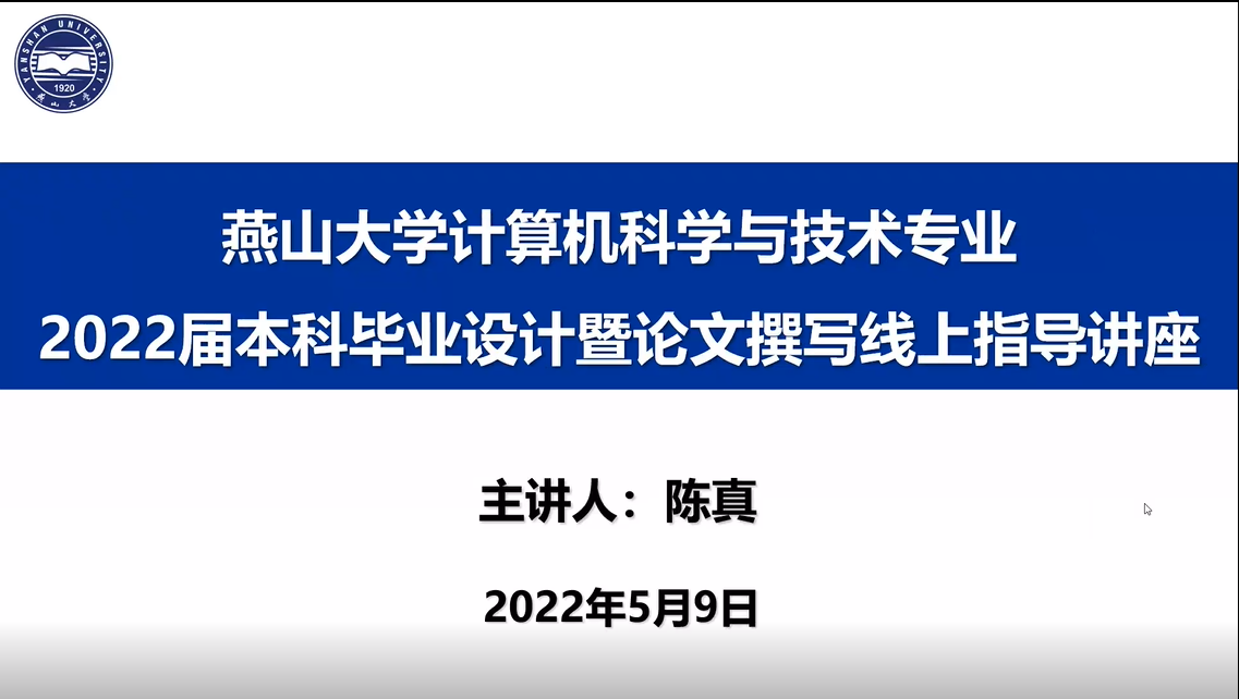 为做好2022届本科毕业设计,保证本科人才培养基本质量。5月9日19:30,永利集团304am登录计算机科学与工程系面向2022届全体毕业生,通过召开线上会议的方式,举办了计算机专业本科毕业设计暨论文撰写线上指导讲座。会议由计算机科学与工程系毕设负责老师陈真主持,2022届全体毕业生参加。