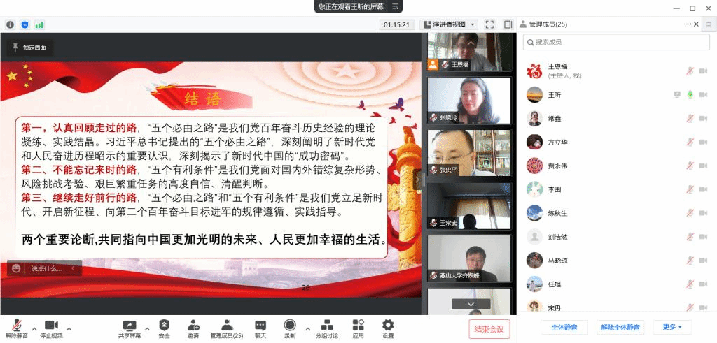 4月26日上午8:30,公司党委在线上召开理论学习中心组(扩大)学习会,专题学习习近平总书记在中国人民大学考察和2022年全国两会期间重要讲话精神。公司领导班子成员、党委委员、专职组织员、教工党支部书记和全体辅导员参加了会议。