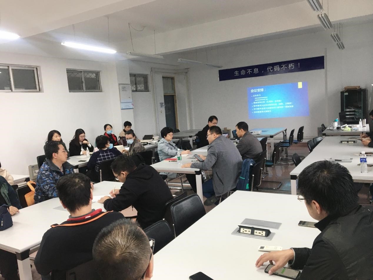 最后,孔得伟和沈秀敏两位教师分享了思政教学的经验。孔得伟以《软件质量保证与测试》课程中的思政授课为例,从课堂形式、思政目标、教学环节设计等方面展开了交流,并指出在思政授课的同时做到润物细无声的境界是下一步追求的目标。沈秀敏以《谈谈对课程思政的理解与认识》为题,从如何对员工进行价值引领、能力培养和知识传授相结合的角度展开了讲解。两位教师分享思政授课的经验后,全体教师展开了热烈讨论,至此,本次会议圆满结束。