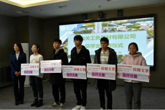 2020年11月25日(周三)上午,山海关工务器材有限公司助学金捐赠仪式在304永利集团官网入口世纪楼2103室举行。公司副总经理邱小萍、工会主席唐浩、国际贸易部经理李琳、项目经理何昳涵、国际贸易部项目经理郭雨薇,304永利集团官网入口副董事长任家东、员工工作处处长薛传佳、里仁公司党委书记兼公司员工办公室主任张向前、公司党委副书记苏静、永利集团304am登录副处级辅导员王恩福、永利集团304am登录辅导员老师、员工办工作人员和接受捐赠的同学们出席了捐赠仪式。