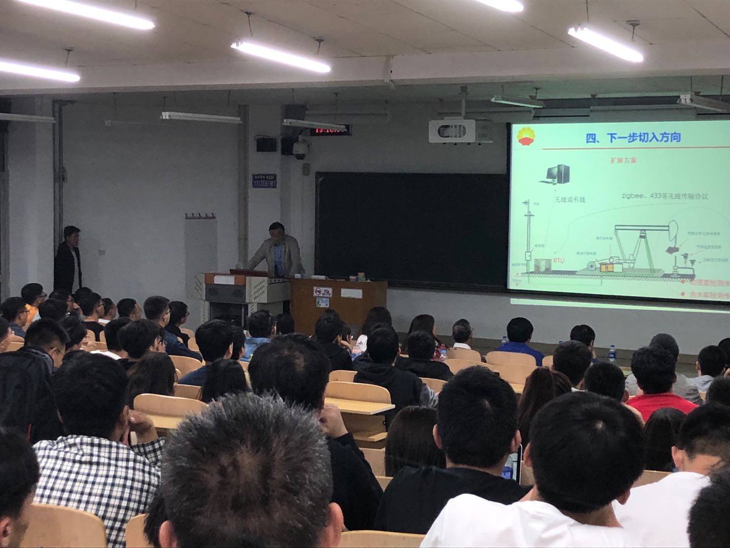 座谈会上,学科邀请304永利集团官网入口原副董事长、博士生导师孔令富教授为参会师生作了题为“学位课题是高质量公司产品的关键”的专题报告。孔令富教授强调科研选题要和国家重要行业领域的重大需求紧密结合,积极发挥学科的科研优势,开拓进取,以实际行动解决社会生产和技术领域的科研难题,为国家经济发展献出自己的一份力量。孔令富教授介绍了目前在研的两个课题,其一是:针对当前石油行业陆面井口参数测量自动化程度低、精确度差、效率低、工作量大等问题,结合物联网技术、传感技术并携手中国石油集团测井有限公司(CPL)等企业就当前数字化油田组网工程及重点监测装备陆面单井口参数自动化在线监测装置的技术难题开展技术攻关和理论创新。其二是:为解决高温高压等极端恶劣环境下煤炭地下气化炉和监测井内气化物组分测量问题,融合光谱技术、光纤传感技术、数字电路技术就当前煤炭地下气化产物在线检测系统进行方案设计并进行理论创新和技术攻关。孔令富教授介绍的课题为在座师生选择课题方向提供了指导意见。