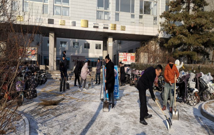 12月23日,秦皇岛市迎来2019年入冬以来的一场大雪,大雪为燕园披上了银色的外衣,可谓是银装素裹,但经过一夜的降雪和低温,校园内的道路积雪成冰,给校园交通带来了很大不便,也给全院师生的安全出入带来隐患。