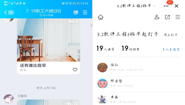 活动一经发布便激起了同学们的兴趣,各班级同学纷纷热情参与,更有党员同学积极发挥带头模范先锋作用,始终坚持打卡,为同学们树立了榜样。