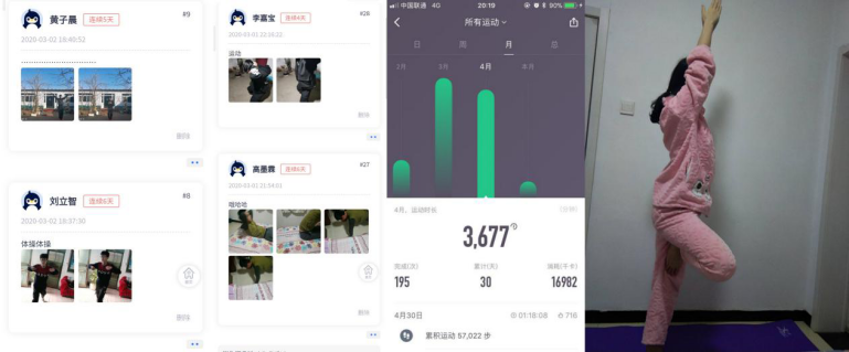 在这场抗“疫”战中,党员、团员、员工骨干以身作则,以班级为单位开展了内容丰富的主题学习活动。通过“读书破万卷,以读战‘疫’”、“居家锻炼,健体战‘疫’”等活动,号召大家学习新知识、掌握新技能、锻炼身体增强免疫力,为线上课堂及开学复课做准备。