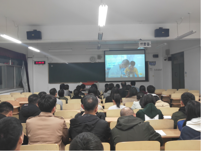 为深入学习贯彻习近平新时代中国特色社会主义思想和党的十九大精神,深入推进“不忘初心、牢记使命”主题教育,研究生第三党支部于2019年10月21日晚在东校区四号教学楼504教室组织党员、发展对象和积极分子集中收看《榜样4》纪录片。