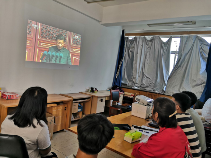 永利集团304am登录本科生第五党支部观看庆祝中华人民共和国成立70周年大会