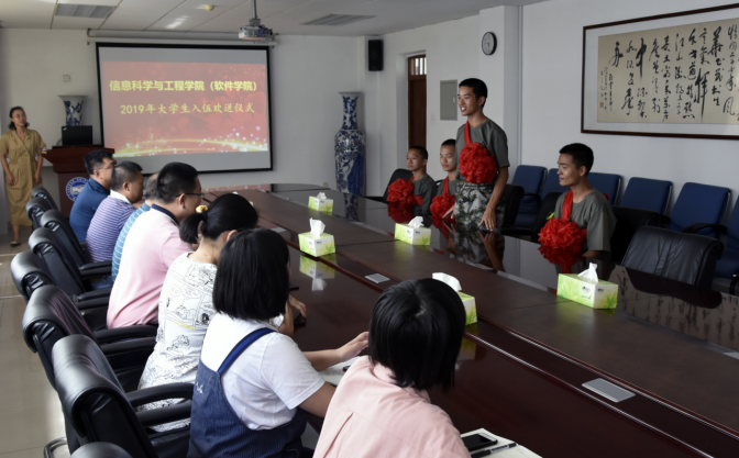 欢送仪式上,2019年新入伍的四名员工介绍了自己的情况,并且表达了参军入伍保家卫国的决心。