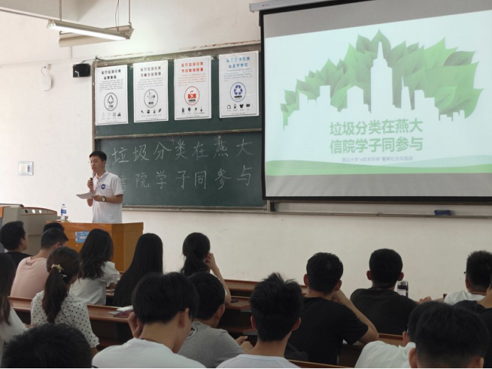 为响应6月3日习近平总书记关于“实行垃圾分类,关系广大人民群众生活环境,关系节约使用资源”的指示精神,2017级软件工程专业员工于9月1日在西校区教学楼(里)J205,举办了一场 “垃圾分类我先行”主题活动。