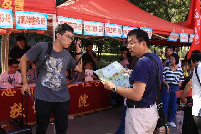 迎新工作人员热情周到为新同学服务