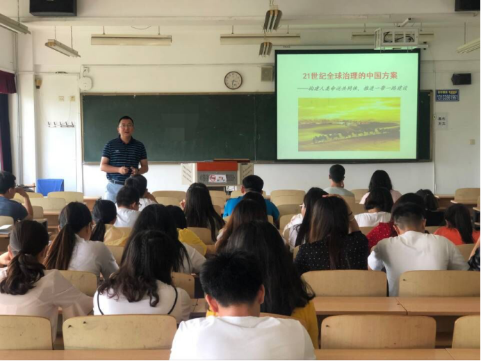 其次,李老师围绕“构建人类命运共同体”进行了深入讲解。李老师指出习近平同志在十九大报告中提出要坚持和平发展道路,推动构建人类命运共同体。中国共产党始终把为人类作出新的更大的贡献作为自己的使命。中国将高举和平、发展、合作、共赢的旗帜,恪守维护世界和平、促进共同发展的外交政策宗旨,坚定不移在和平共处五项原则基础上发展同各国的友好合作,推动建设相互尊重、公平正义、合作共赢的新型国际关系。李老师强调人类命运共同体意识超越种族、文化、国家与意识形态的界限,为思考人类未来提供了全新的视角,为推动世界和平发展给出了一个理性可行的行动方案。