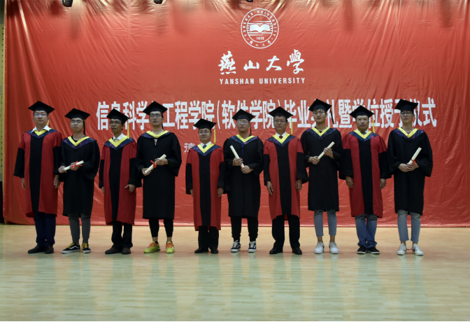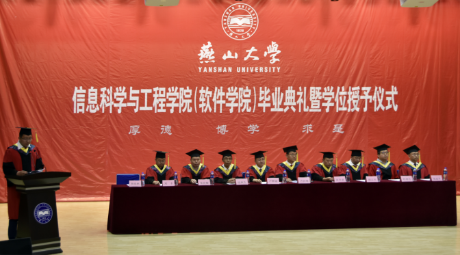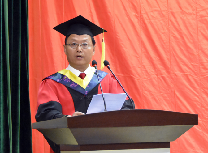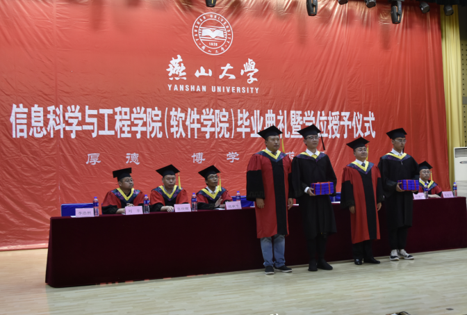 毕业典礼后,学位授予仪式正式开始,公司党委书记卢辉斌、副经理练秋生、副经理齐跃峰、党委副书记陈革新、副处级辅导员李浩然共同为毕业生授予学位。