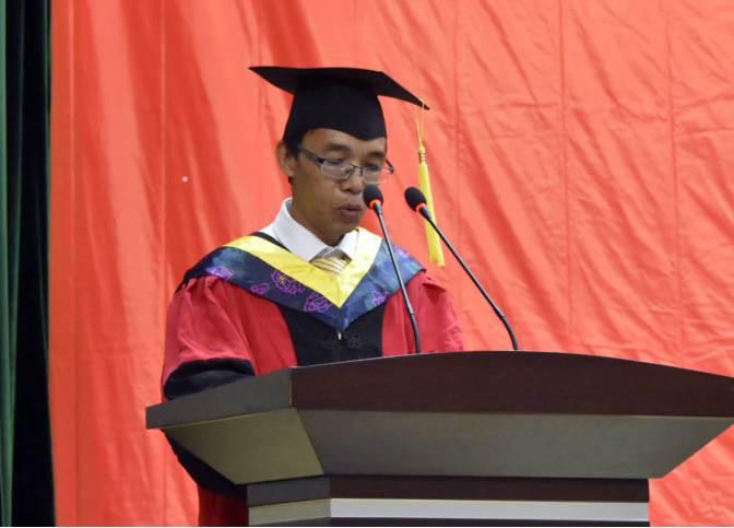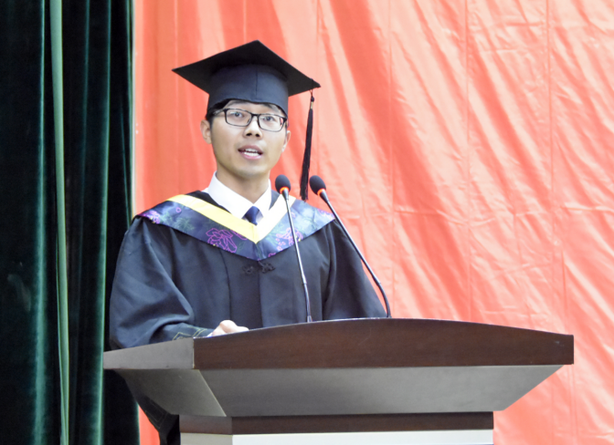 2015级计算机科学与技术4班常艳鹏代表2019届全体毕业生表达了对母校的感情和感恩,同时她郑重承诺,一定继续秉承燕大“厚德、博学、求是”的校训,发扬“艰苦奋斗、严谨治学、求实创新”的燕大精神,用实际行动为国家和社会做出贡献,回馈母校。