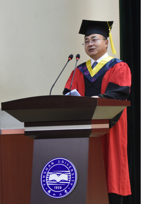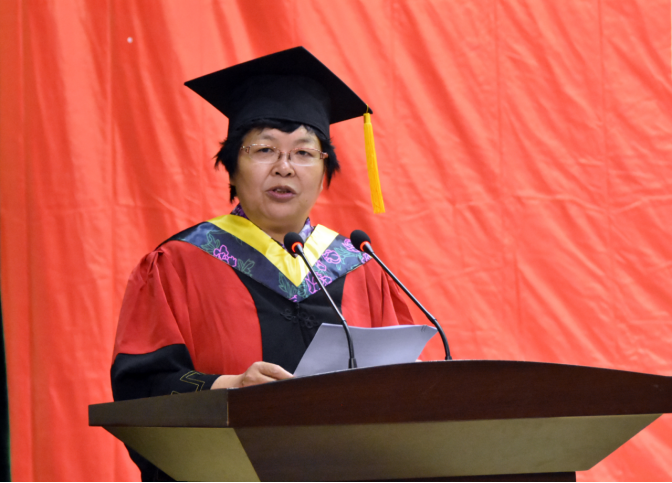 光电子系毕卫红教授代表教师发言,她对2019届毕业生圆满完成学业表示衷心的祝贺!她教育毕业生:四年的汗水浇铸了你们坚实的专业基础,东西校区的奔波成就了你们坚强地自信,希望大家勇于实践,敢于创新,厚积博发。十年或二十年之后我们再相聚,同学们能够自豪地说:“我们是燕大的骄傲!”