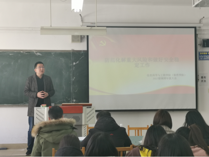 2019年3月25日上午10时,永利集团304am登录2017级硕博研究生在东校区四号教学楼306召开年级大会,大会主题为防范化解重大风险,会议由2017级硕博辅导员李浩然老师主持。