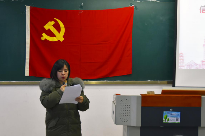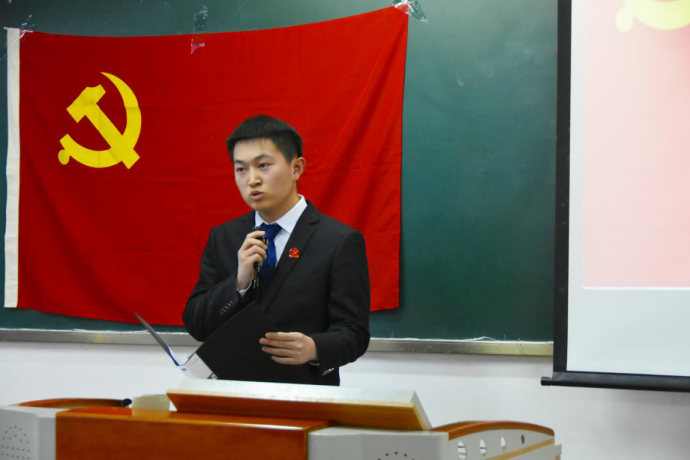 本科生第一党支部孟祥雨同志代表新党员庄严承诺,要志存高远,坚定理想信念,要脚踏实地,提升党性修养。用实际行动践行自己的入党誓言。