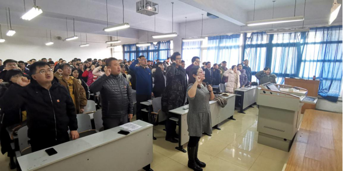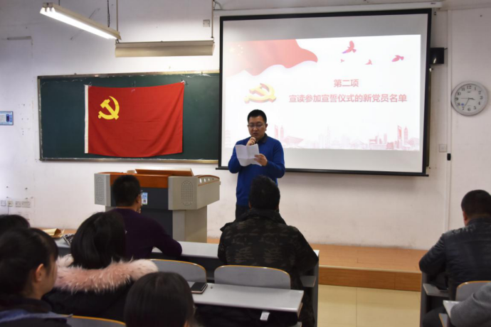 1月8日下午,永利集团304am登录在里仁教学楼B203举行了新党员入党宣誓仪式,公司党委副书记陈革新、公司各员工党支部书记及87名新党员参加了此次活动。宣誓仪式由公司员工党务工作负责人纪淳老师主持。