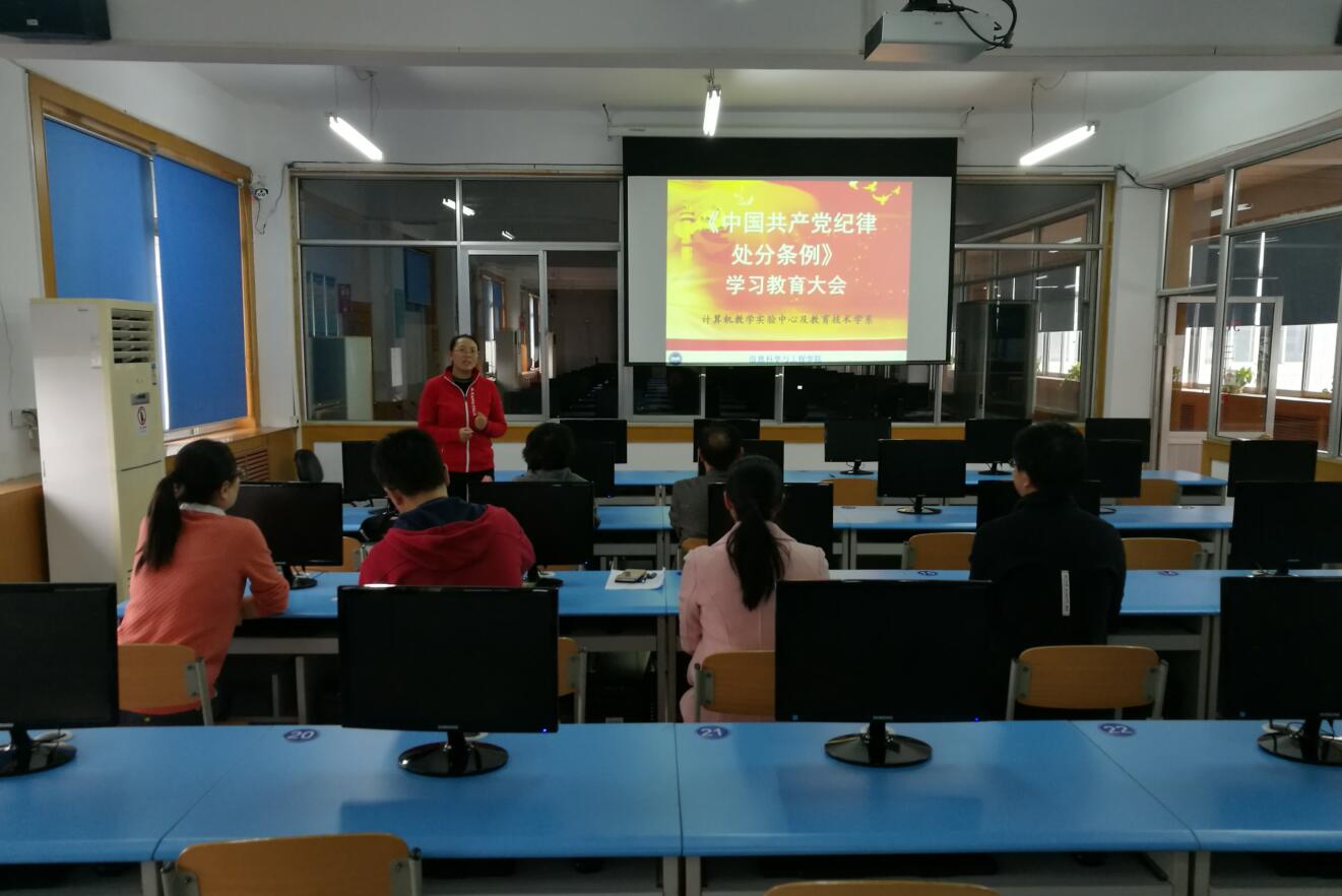 2018年10月25日下午,计算机教学实验中心与教育技术学系在第三教学楼三机房召开了《中国共产党纪律处分条例》专题学习会。会议由党支部书记巢进波同志主持,全系党员参加学习。