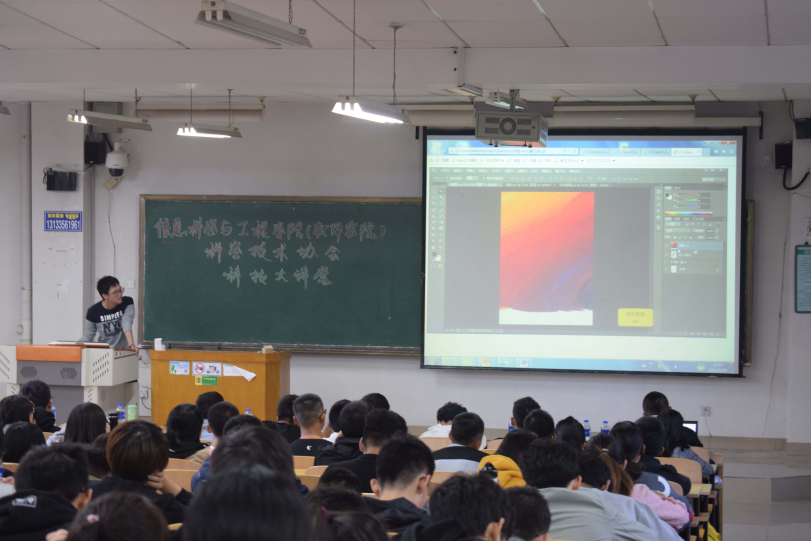 王崇志、李丹阳同学以多媒体设计大赛作品:《青年梦,中国梦》、《梦想·印记》为例,讲解了多媒体设计大赛的相关流程,并详细介绍了Photoshop等平面软件的使用技巧,他们的讲解由易到难,深入浅出,渐学渐进,十分生动形象,收到了与会员工的一致好评。