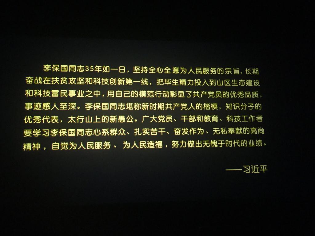 观看后,一些精典台词给大家留下深刻印象,李保国说“活着干,死了算!”,“你老师这一辈子,最骄傲的是,把我变成了农民,把越来越多的农民变成了我!”,“老百姓需要什么我就研究什么,需要技术扎在民众里。”,“最高的山就是太行山,别整天想着爬多高,你得想想你那个根扎多深”。