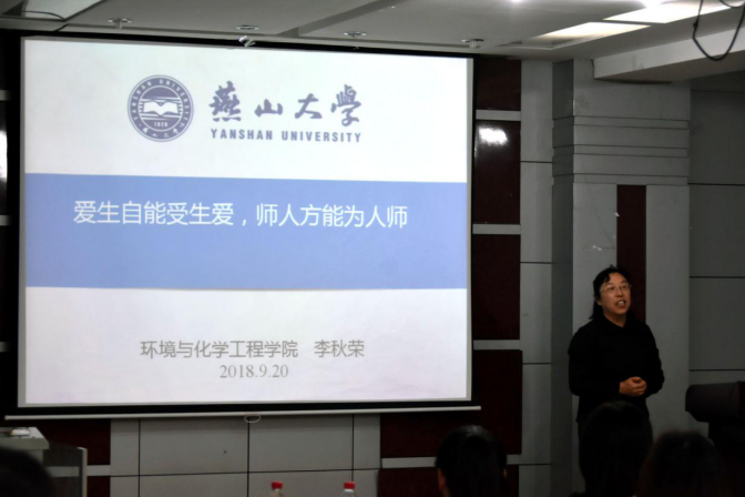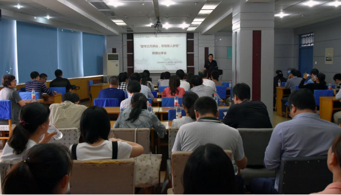 李秋荣老师从教20多年,一直注重培养员工的职业素养和科学精神,李老师以“爱生自能受生爱,师仁方能为人师”为主题,从职业的基石、职业的成就、职业发展、教学科研四个方面与在场教师分享了个人对教育的感悟。胡月秀老师从“热爱”、“责任”的角度分享了自己从教以来的点滴心得。“以员工为中心”、“为了一切员工,为了员工的一切”是胡老师一直以来工作的出发点和落脚点,她用真心用真情诠释了“爱是教育的底色”。