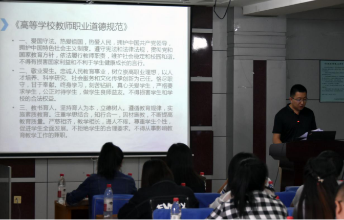 在师德分享会开始之前,按照304永利集团官网入口师德建设主题教育月活动的要求,所有教师一起学习了《高等公司教师职业道德规范》。现场学习加深了对教师职业道德的理解,强化了责任感和使命感,公司全体教师在学习鞭策下将时刻牢记职业道德,秉持职业操守,在公司上下一起努力营造崇礼尚德,尊师重教和关心、理解、支持教师的浓厚氛围。