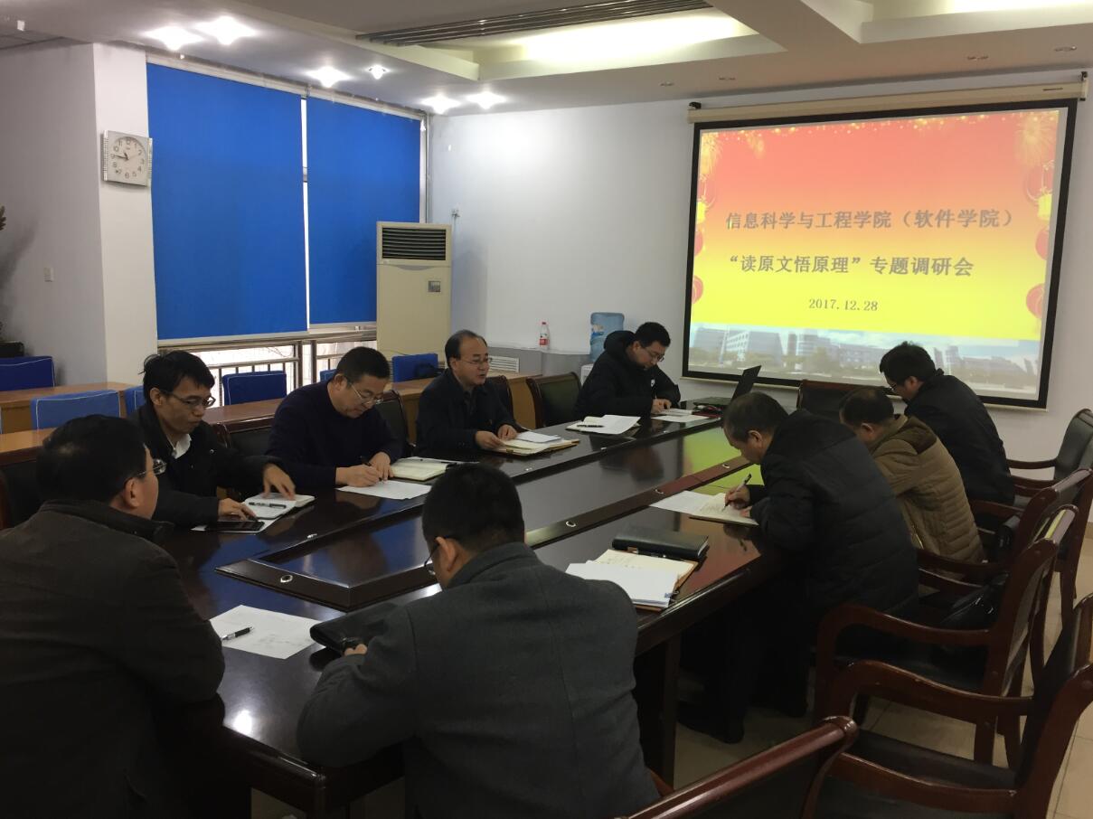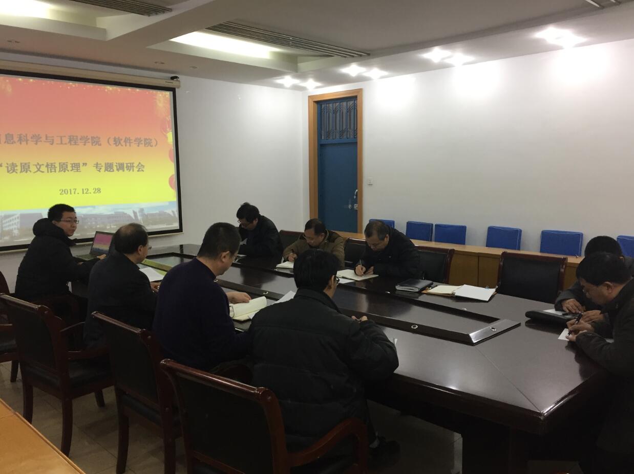 12月28日上午11:00,公司党委在信息馆302会议室召开“读原文悟原理”专题调研会,公司党委委员、班子成员、系主任参加会议,会议由公司党委书记卢辉斌主持。