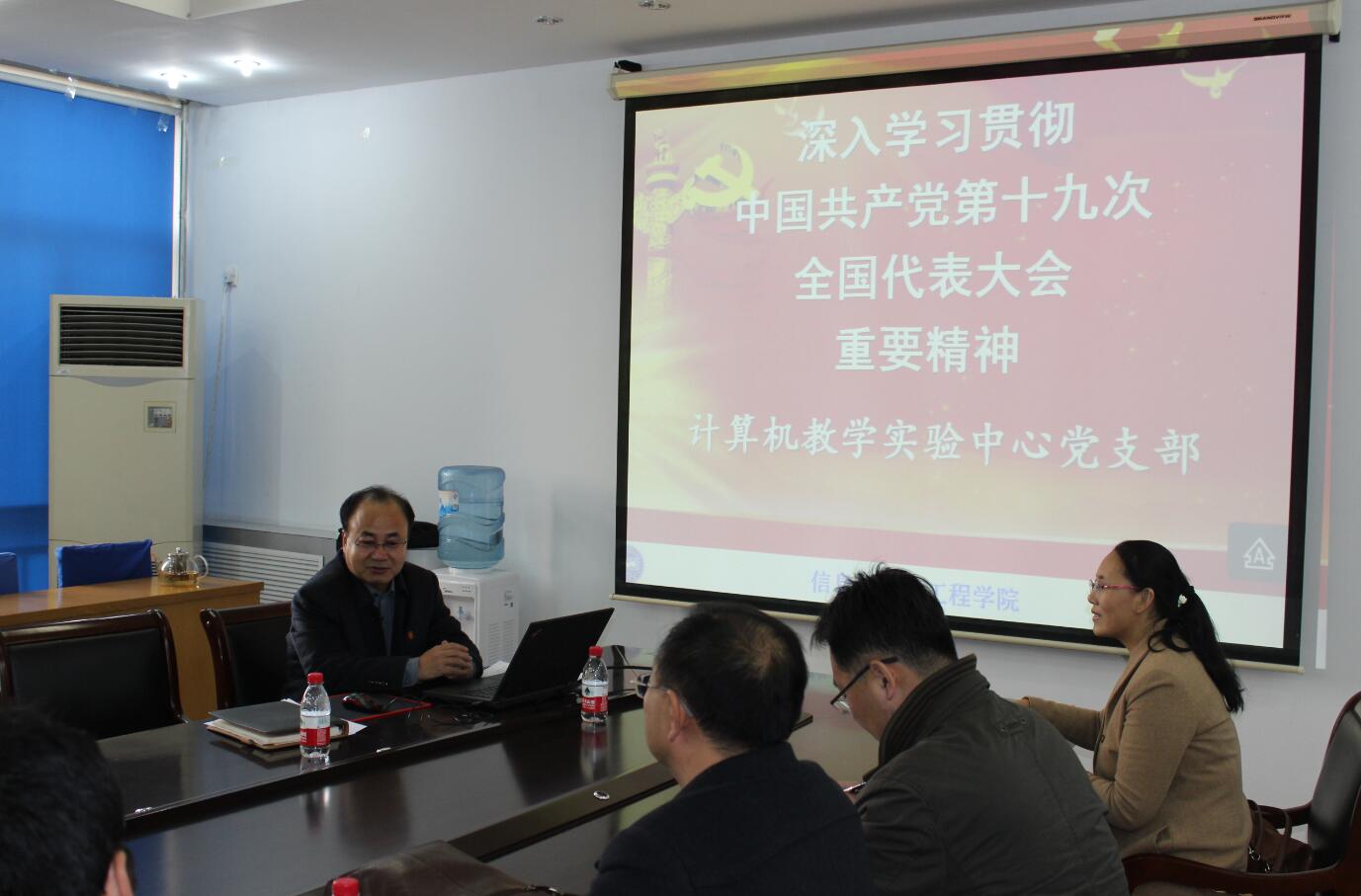 11月23日,计算中心与教育技术学系党支部在信息馆302室召开了关于“深入学习贯彻中国共产党第十九次全国代表大会重要精神”的学习教育会,会议由系党支部书记巢进波同志主持。首先,大家以热烈地掌声欢迎公司党委书记卢辉斌同志正式成为计算中心党支部的一员。卢辉斌同志作为普通党员做了十九大学习体会中心发言,全系教职工党员参加了学习、交流。