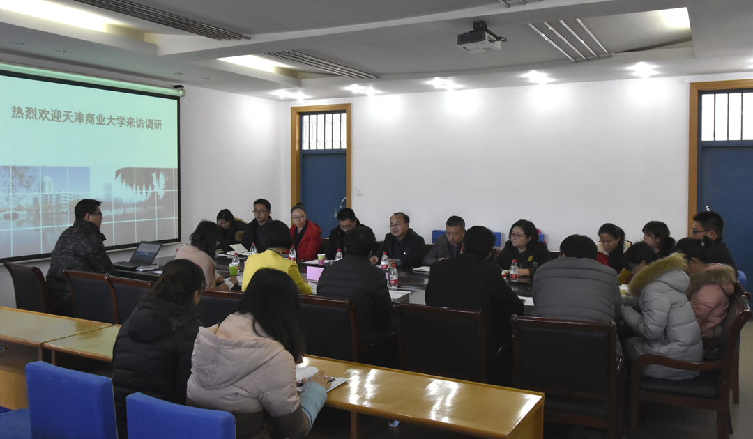 11月24日上午,天津商业大学经济公司党委副书记张玉娟率骨干师生一行6人到公司,调研思想政治工作,公司党委书记卢辉斌、党委副书记陈革新及全体专兼职辅导员在信息馆302与来访人员进行了座谈交流。