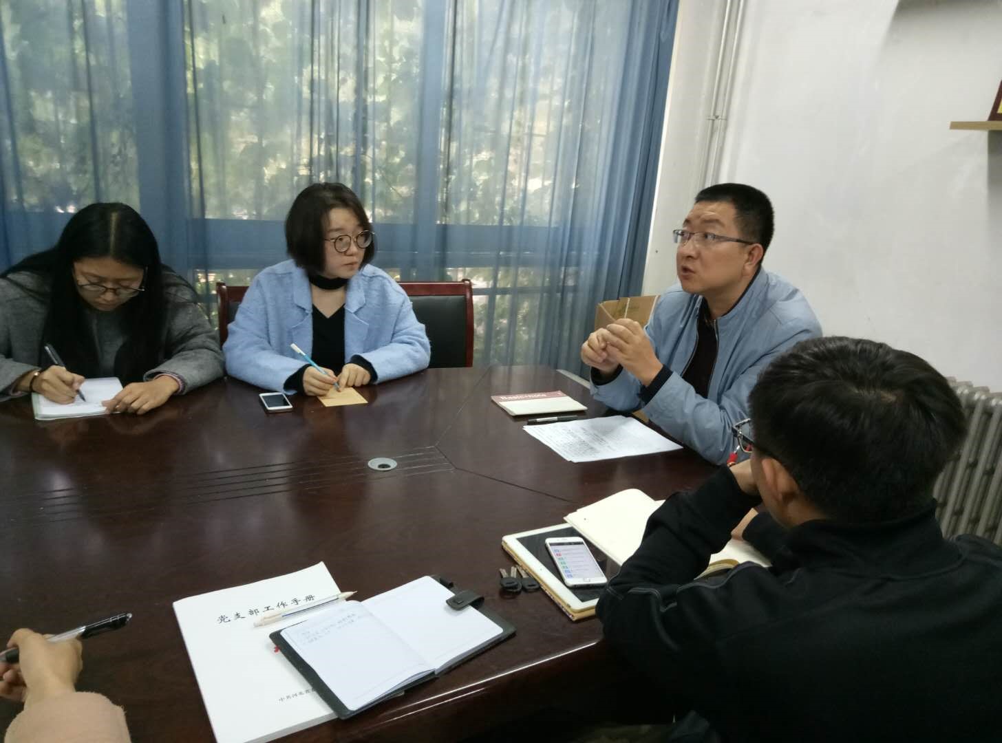 2017年10月21日中午13:00,永利集团304am登录研究生第三党支部在公司会议室109召开党支部工作会议。会议由党支部书记李浩然老师主持,全体党支部委员和党小组组长参加了会议。