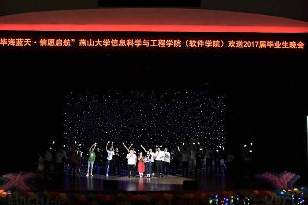 晚会在一段充满校园气息与青春创意的毕业视频中拉开了序幕,视频回顾了2017届毕业生四年燕园求学走过的点滴历程。随后,动感十足的舞蹈《从这里开始》,瞬间点燃了全场氛围,激情四射的歌曲串烧、轻松幽默的默剧表演、魅力十足的花样跳绳,还有《燕大版成都》、《燕大的日子》,一幕幕精彩的表演将场面推向高潮,掌声笑声经久不息。公司领导班子全体成员在晚会中代表公司向2017届毕业生致辞,表达了全院教职员工对每一位毕业生的殷切期望与祝福,浓浓的师生情谊让晚会现场暖意融融。