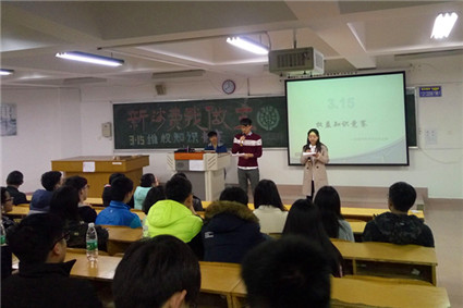 为提高老员工的维权意识,进一步弘扬消费者维权知识,3月15日晚,永利集团304am登录在公司东校区第三教学楼317室举办了主题为“新消费,我做主”的3·15权益知识竞赛,永利集团304am登录2015级200余名同学观看了本次竞赛。