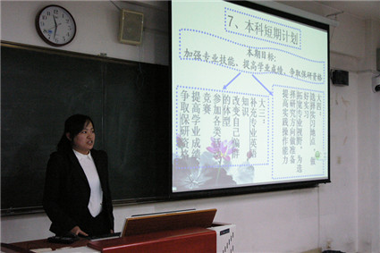 本次比赛共有八位选手参赛。同学们结合自身实际情况与社会需求,从自我认知、职业认知、职业决策、职业规划与实施计划、评估调整等几方面撰写了职业生涯规划书。他们通过演讲和PPT展示,为现场的老师和同学们介绍了自己的职业规划。参赛选手现场展示环节过后,魏冬明老师对此次比赛进行了点评与总结,并为获奖同学颁发了荣誉证书。