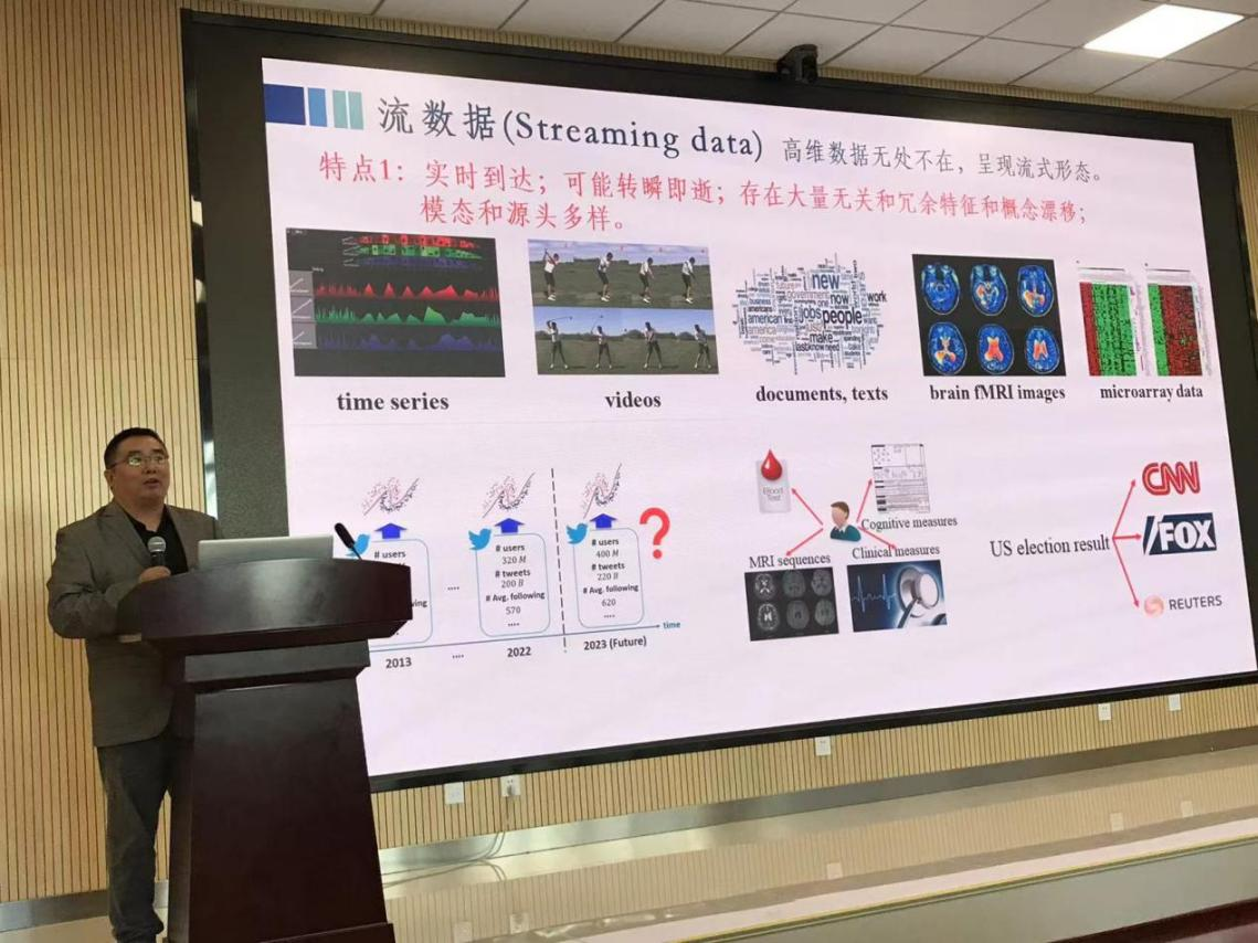 杜军朝以《面向物联网应用的智能感知模型的训练与推断关键技术研究》为题,简要介绍了该领域中的主要研究进展以及团队在该研究方向的相关工作。尤殿龙以《Recent Advances in Online Learning from Streaming Data》为题,从因果特征学习、因果结构学习和反事实推断三方面介绍了近年来的研究成果,剖析了技术层面的核心思想,并对未来工作进行了简要介绍。