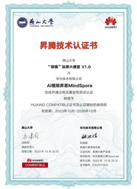 近日,由永利集团304am登录教师冯建周课题组研发的法律大模型“明镜”成功上线河北人工智能计算中心,并通过华为昇腾技术认证,标志着公司在自主人工智能大模型应用领域中开启新篇章。