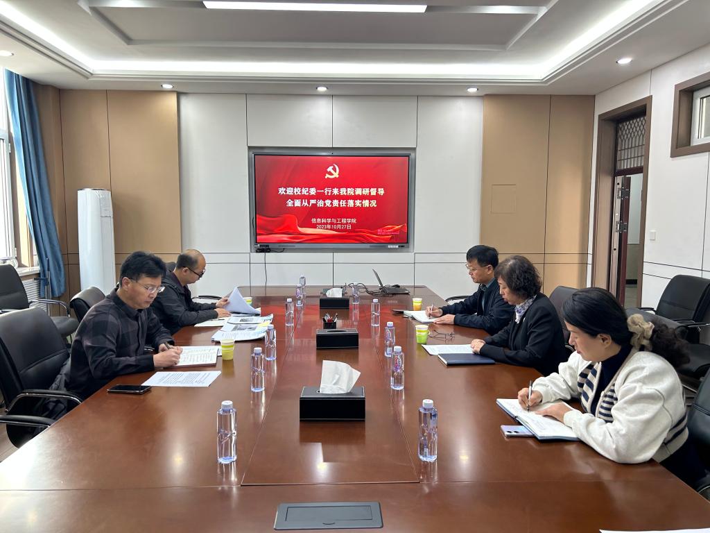 10月27日上午,校纪委副书记赵希海,正科级纪检监察员韩辉到公司就全面从严治党责任落实情况进行专项调研督导。公司党委书记胡铁巍、经理齐跃峰及专职组织员参加会议。