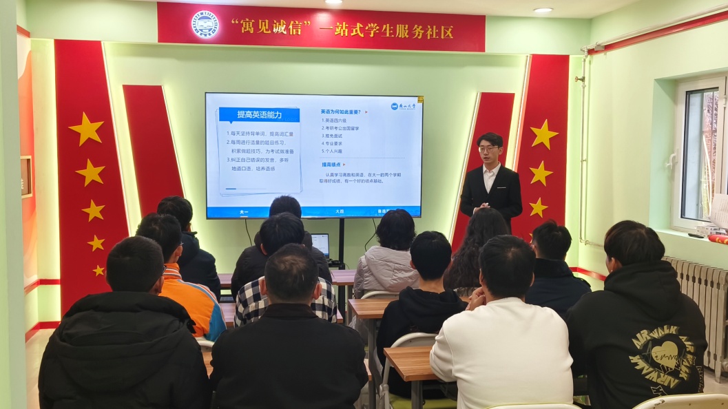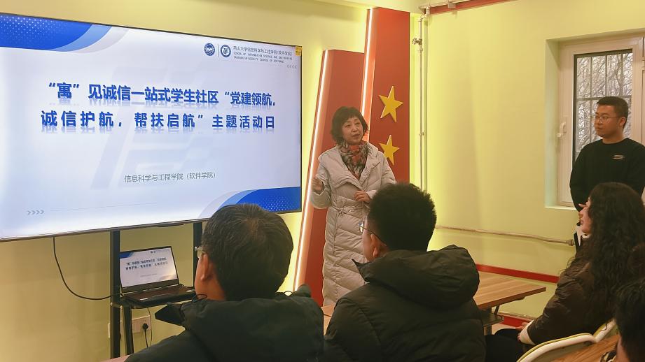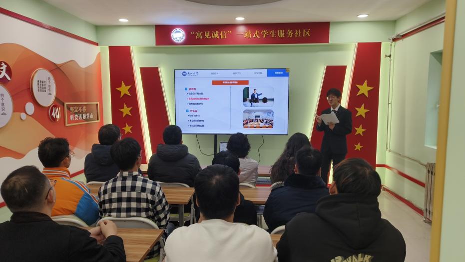 辅导员孟宪源对一站式员工社区及员工功能型党支部的建设情况向与会人员做了简要介绍,一站式员工社区以“寓”见诚信为主题,聚焦老员工诚信教育,以党建工作领航,将充分发挥诚信学风,诚信就业教育功能,满足社区内员工多元化、个性化的需求。功能型党支部将立足新阵地,把党建引领贯穿于员工社区“一站式”建设的全过程、全方位,积极探索党建引领在员工社区的立体支撑和延展下沉的新方法。