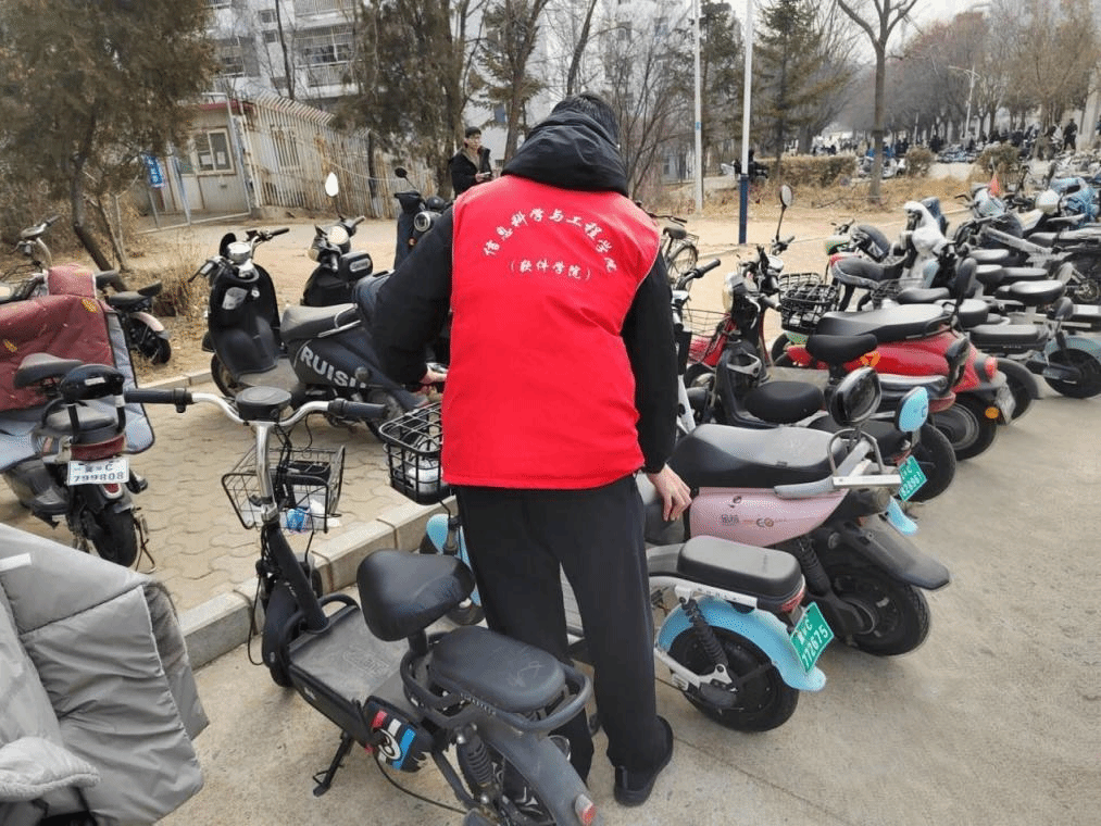 活动中,同学们充分发挥“奉献、友爱、互助、进步”的志愿精神,在早、中、晚三个人流高峰时段,到大食堂、四组团、信息馆周边等地,疏导交通,摆放车辆,营造良好交通秩序,保障校园师生安全、便捷出行。