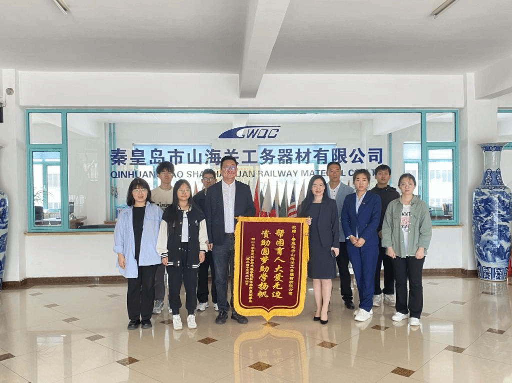 5月24日上午,304永利集团官网入口公司党委副书记李浩然,辅导员朱明骥、任旭、孟宪源带领5名受资助的应届毕业生赴山海关工务器材有限公司走访交流,向公司赠送了“帮困育人大爱无边,资助圆梦助学杨帆”的锦旗。