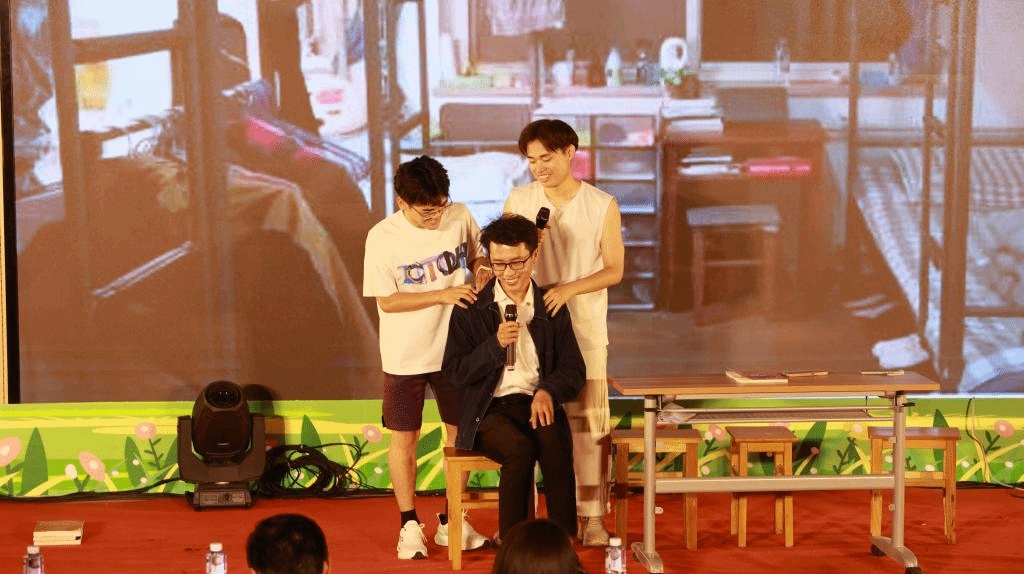 在第一篇章结尾,围绕《七号门开启的故事》开展了有奖趣味答题互动环节,题库选择校园景致燕飞湖、宿舍楼,一站式社区等同学们的身边事展开,同学们在笑声中收获了感动。