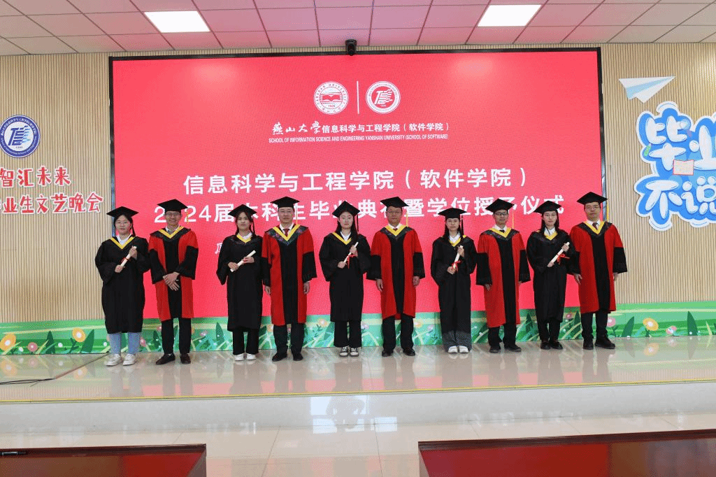 公司领导和教师代表为软件专业毕业生授学位并合影留念
