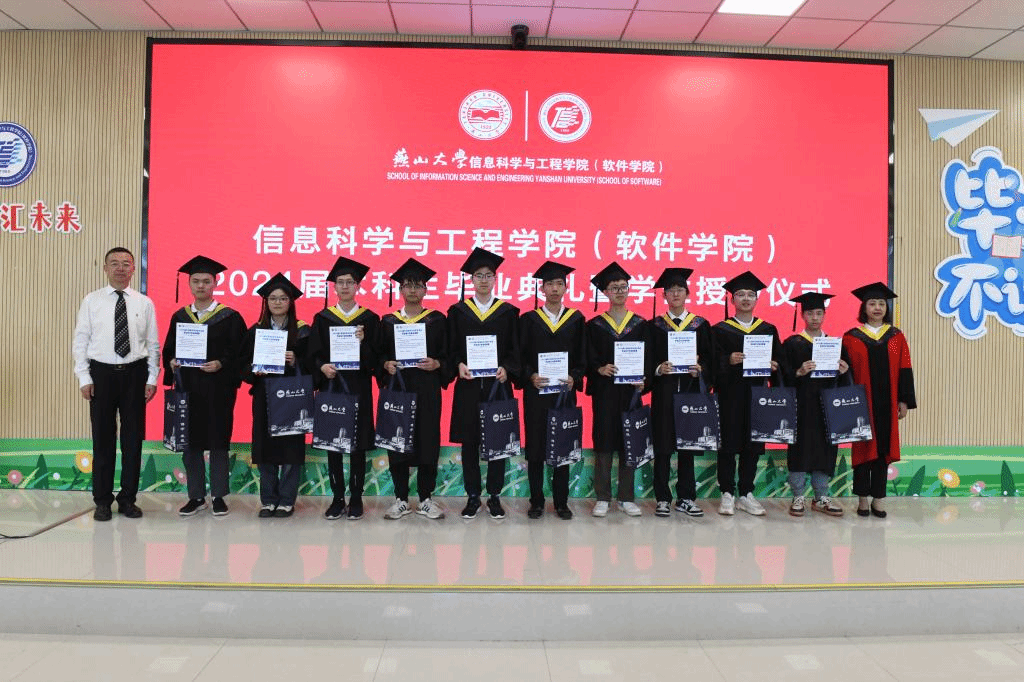 公司领导和教师代表为计算机专业毕业生授学位并合影留念