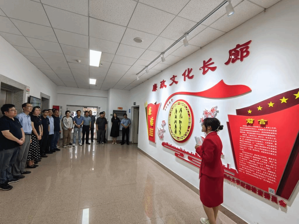 讲解员详细介绍了“清风弥万世 廉韵润燕园”为主题的廉政文化长廊。廉政文化长廊由1个序厅、4个主展区和9个分展区组成。包括“栉风沐雨 砥砺前行”、“多措并举 从严治党”、“崇廉尚俭 淳风化俗”、“以案为鉴 警钟长鸣”等9个分展区,展区更新完善了《中国共产党纪律处分条例》、警示案例、忏悔录、纠治“四风”等展陈内容及数据;增加了电教板块、实物展陈、党纪学习教育画展等内容。